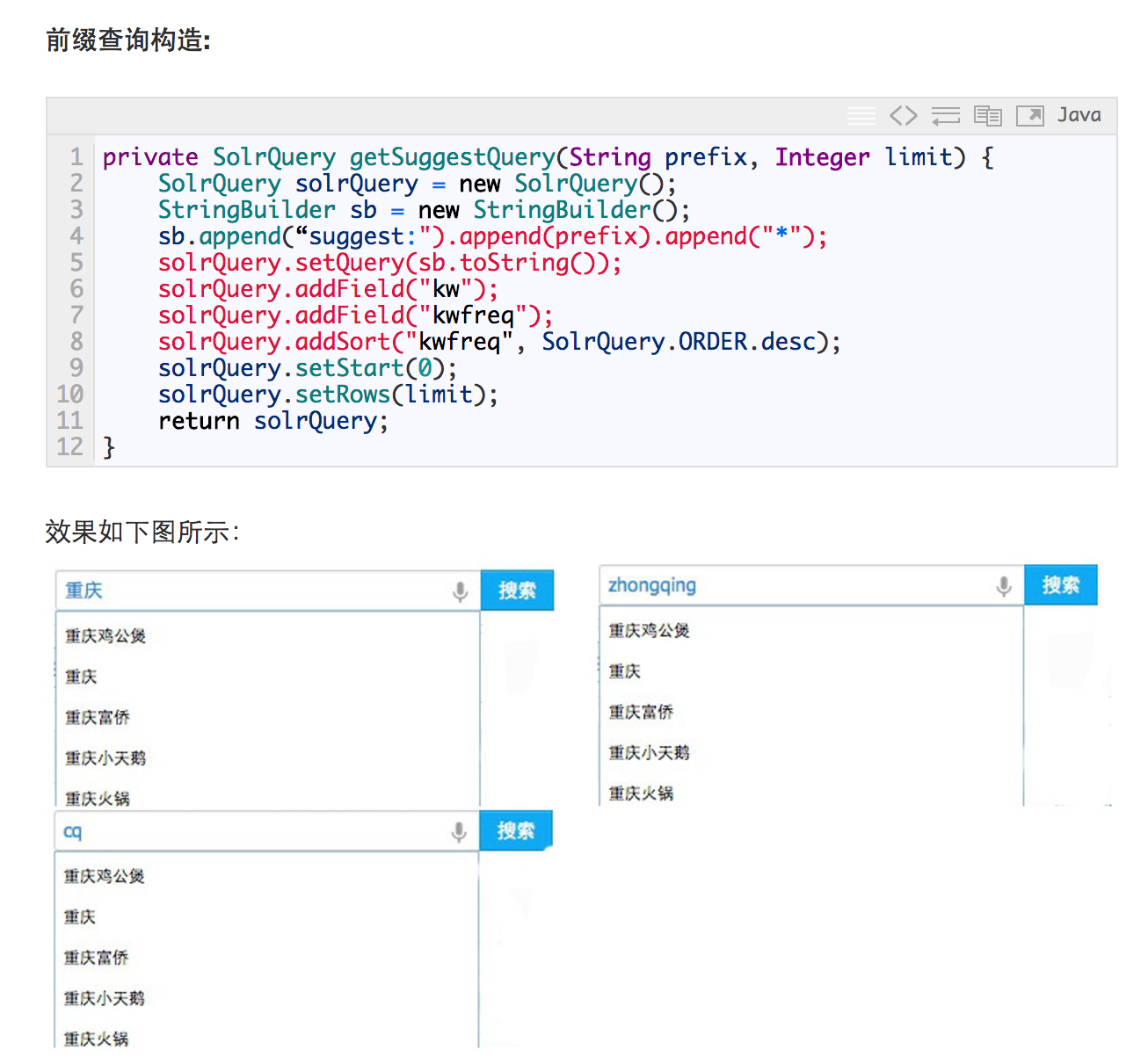 美团在几年前也写了一篇文章来介绍自己的热词推荐:搜索引擎关键字智能提示的一种实现。然而这种实现,个人觉得有个设计非常不好。因为Solr在整个系统中,即做了“存储索引”的角色,又做了“构建索引”的角色。违反了职责单一原则。因为当我们想改变构建索引的算法时,同时会影响到“存储索引”的逻辑。