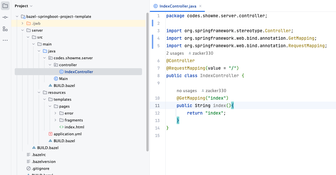 完整的工程地址:https://github.com/zacker330/bazel-springboot-project-template